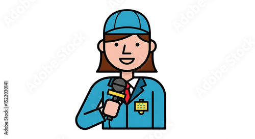 © Aiustock, Fototapeta premium Cartoon Reporter with Microphone