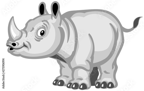 Naklejka premium Cartoon rhino. Baby rhinoceros side view. Isolated vector illustration for...
