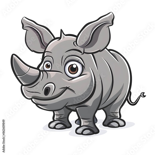 © PSCL RDL, Naklejka premium cartoon rhino mascot character design vector, logo template isolated on white background