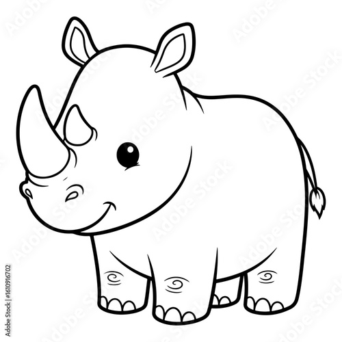 Naklejka premium Cartoon Rhino Outline Illustration