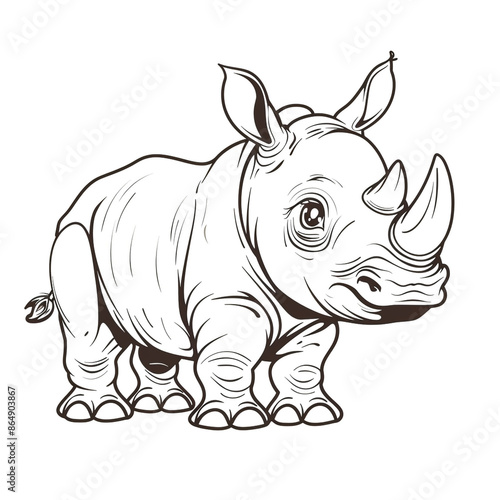 © Ammar, Fototapeta premium Cartoon rhinoceros, outlined for coloring, on a white background.