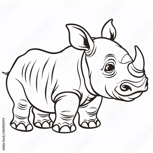 © Ammar, Fototapeta premium Cartoon rhinoceros, outlined for coloring, on a white background.