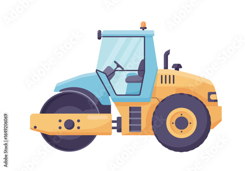 © Cintia, Fototapeta premium Cartoon Road Roller with Blue Cab and Yellow Body Illustration.