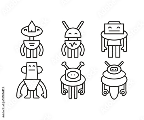 © bigpa, Naklejka premium cartoon robot icons set line illustration