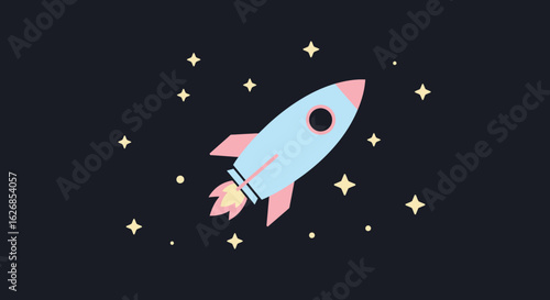 Naklejka premium Cartoon Rocket Ship Launching in Space with Stars.