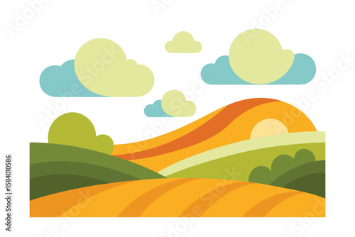 © Mittika, Obraz premium Cartoon Rolling Fields Under Stylized Clouds