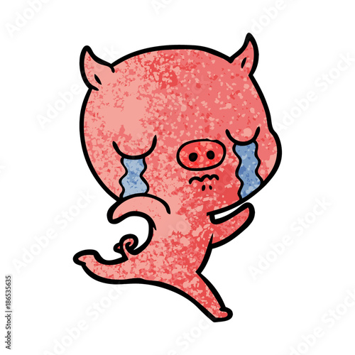 Obraz premium cartoon running pig crying
