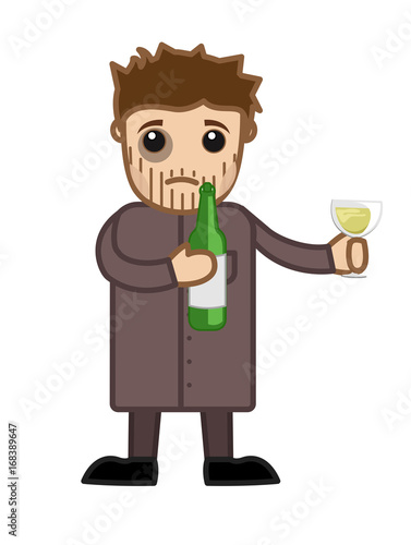 Fototapeta premium Cartoon Sad Character Drinking Wine Concept