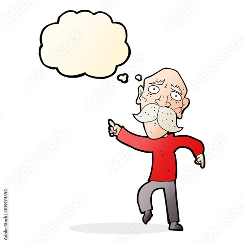 Obraz premium cartoon sad old man pointing with thought bubble