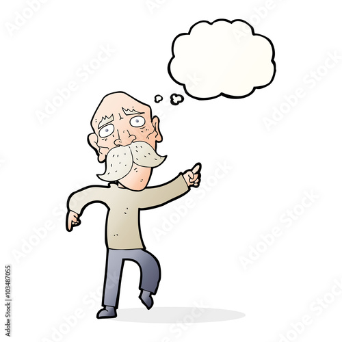 Fototapeta premium cartoon sad old man pointing with thought bubble