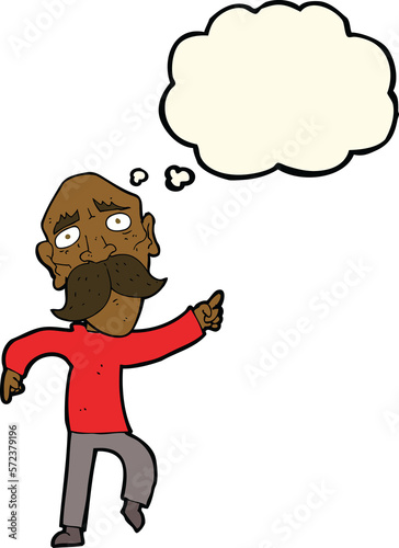 Fototapeta premium cartoon sad old man pointing with thought bubble