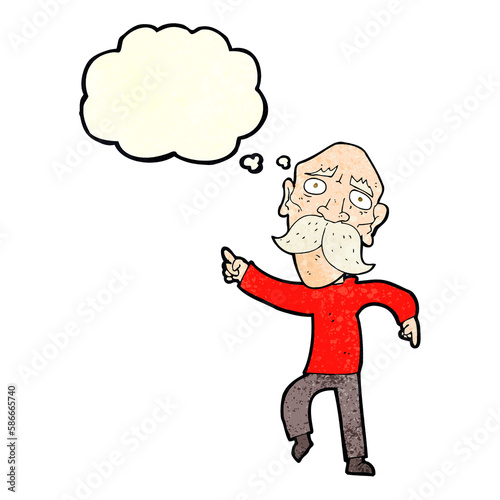 Fototapeta premium cartoon sad old man pointing with thought bubble