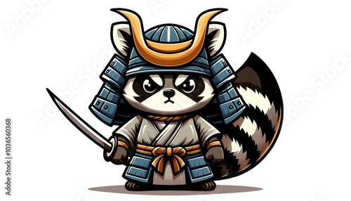 © Herman Antoni, Fototapeta premium Cartoon Samurai Raccoon Hero