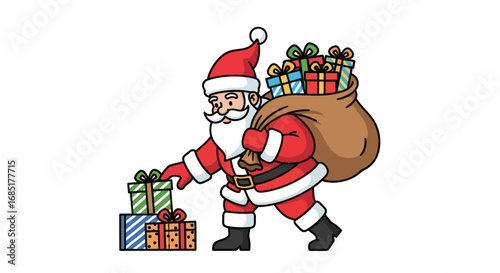 © ahmad, Obraz premium Cartoon Santa Claus Carrying Gifts and a Large Sack.