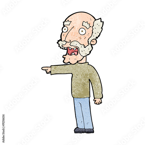 Obraz premium cartoon scared old man pointing
