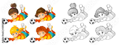 © agaes8080, Fototapeta premium cartoon scene with football soccer girl on white background - illustration