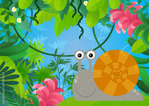 Fototapeta premium cartoon scene with forest and animal creature insect snail illustration for...
