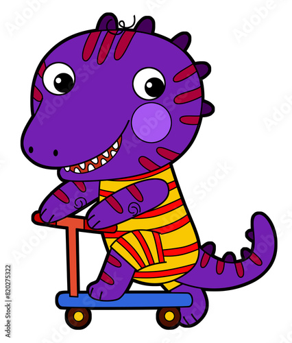 Fototapeta premium cartoon scene with happy funny dinosaur dino lizard dragon kid child having fun playing kindergarten isolated background illustration