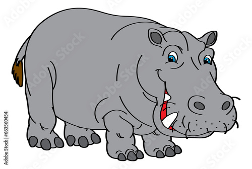 Naklejka premium cartoon scene with hippo hippopotamus happy playing fun sketch drawing isolated illustration for children