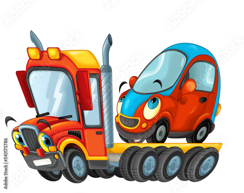 Fototapeta premium cartoon scene with tow truck driving with load other car isolated illustration for children