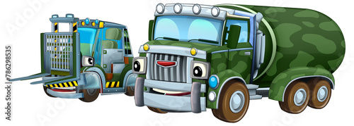 Fototapeta premium cartoon scene with two military army cars vehicles theme isolated background illustration for children