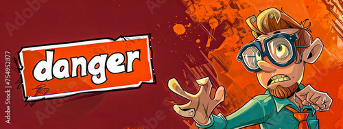 © edojob, Fototapeta premium Cartoon scientist warning of danger