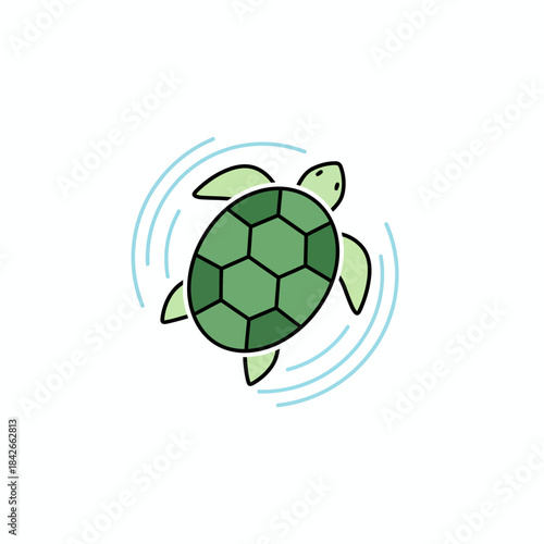 Obraz premium Cartoon sea turtle swimming with light blue water trails