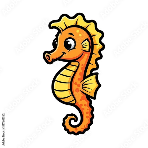© Yu, Fototapeta premium Cartoon Seahorse Illustration with Yellow Fins.