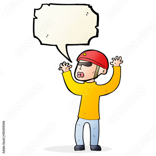 © lineartestpilot, Obraz premium cartoon security man panicking with speech bubble