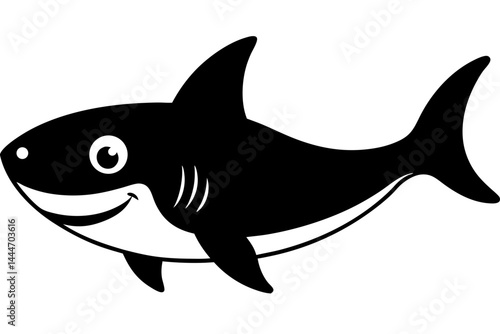 Fototapeta premium Cartoon shark black and white silhouette with a friendly smile