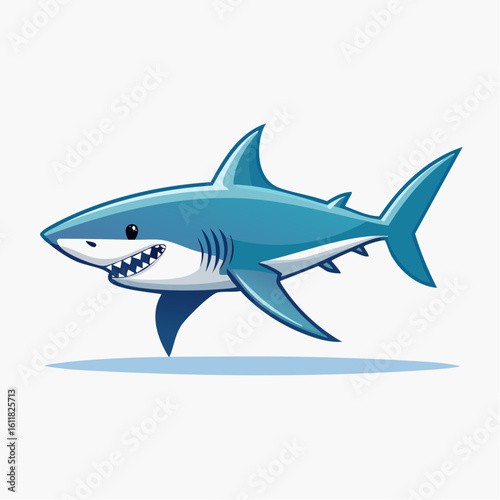 Obraz premium Cartoon Shark Character Illustration with Blue and White Color Scheme on White Background