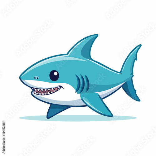 © Rizaldi, Fototapeta premium Cartoon Shark Character Swimming Happily: A Child-Friendly Ocean Illustration