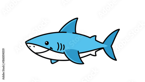 Fototapeta premium Cartoon shark illustration, a friendly and smiling aquatic predator, blue color, simple design.