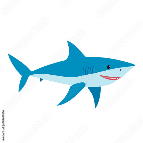 Fototapeta premium Cartoon Shark Smiling with Sharp Teeth