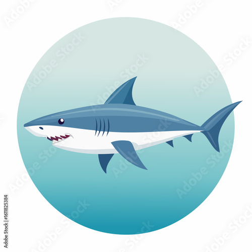 Naklejka premium Cartoon Shark Swimming in a Blue Circle: A Child-Friendly Illustration of...