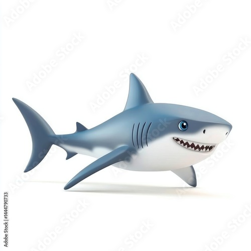 © NikahGeh, Naklejka premium Cartoon shark swimming in a white background.