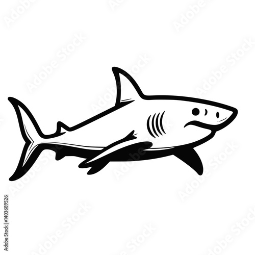 Obraz premium Cartoon Shark Swimming in Black and White Style