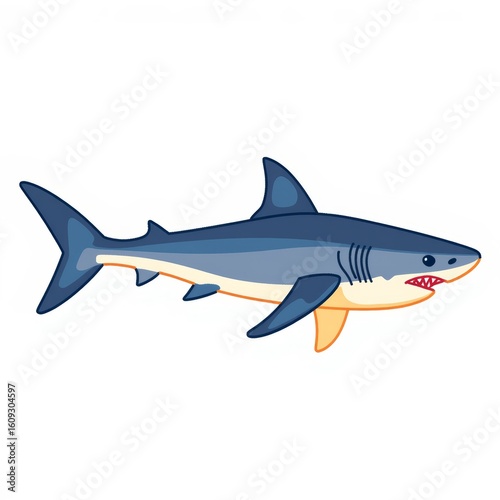 © Vladimir, Obraz premium Cartoon shark swimming in the ocean with a friendly expression