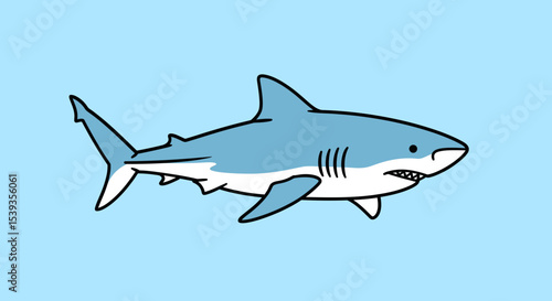 Fototapeta premium Cartoon shark swimming with outline on blue backdrop