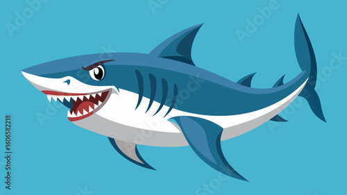 Obraz premium Cartoon shark with fierce grin and sharp teeth