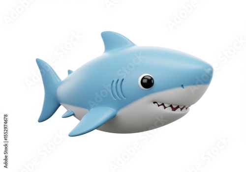 Fototapeta premium Cartoon shark with light blue skin and white teeth on white background