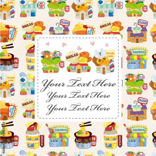 © notkoo2008, Fototapeta premium cartoon shop building seamless pattern