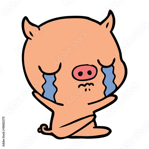 © lineartestpilot, Obraz premium cartoon sitting pig crying