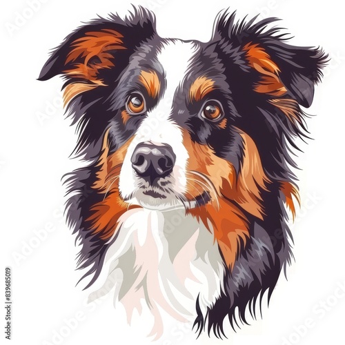 © Nikolai, Fototapeta premium Cartoon sketch of black tricolor australian shepherd dog portrait icon on white background