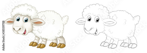 Obraz premium Cartoon sketch scene sheep is standing looking and smiling - illustration