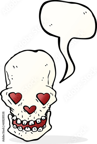 Obraz premium cartoon skull with love heart eyes with speech bubble