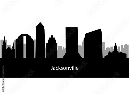 Naklejka premium Cartoon skyline silhouette of the city of Jacksonville, Florida,