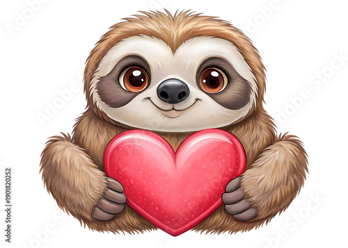 © Hridoy, Fototapeta premium Cartoon sloth holding pink heart brown