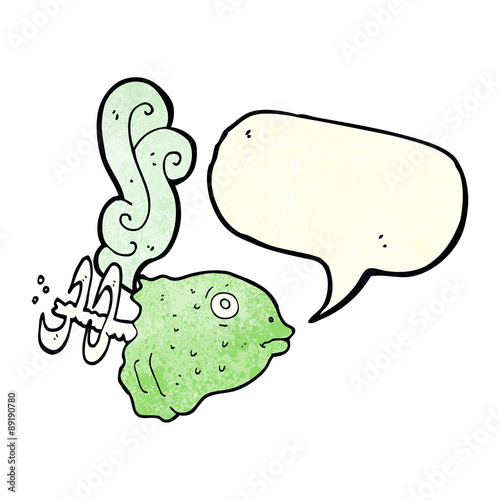 Naklejka premium cartoon smelly old fish head with speech bubble