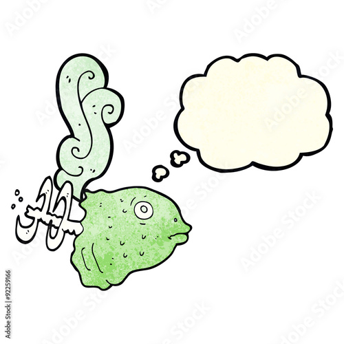 Naklejka premium cartoon smelly old fish head with thought bubble
